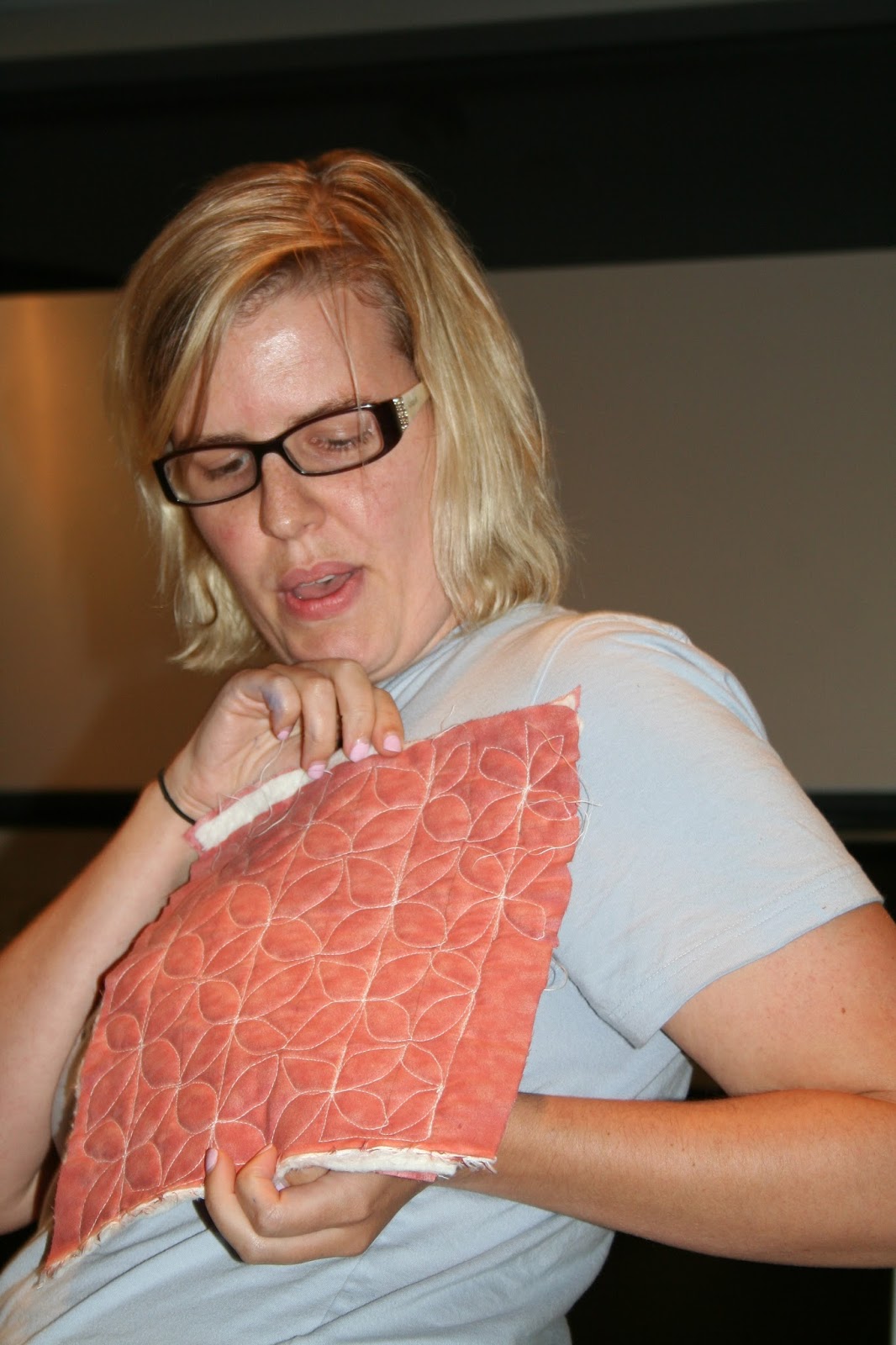 In fact, she brought in a few samples of free-motion quilting samples she had been working on and it won’t be long before they show up on an actual quilt!