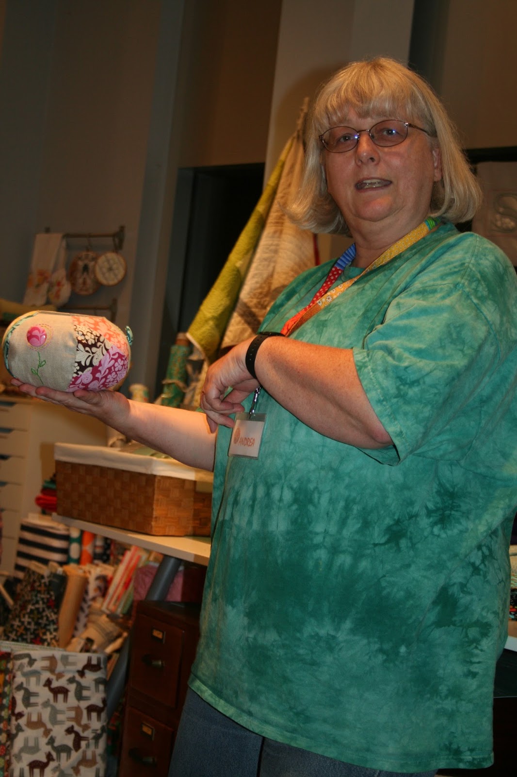 Andrea shared a genius invention that had us all leaving with envy. She participated in an online swap for pincushions and her partner created one with a center holder!