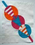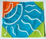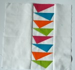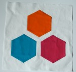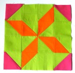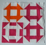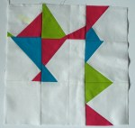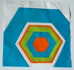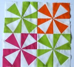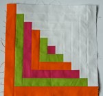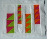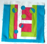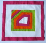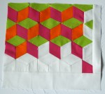 We gave each member three fat eighths of colors from our guild logo– Kona Chartreuse, Caribbean, Bright Pink and Orange (not a subtle pallette!). They used those colors plus Kona White to make a block that reflects what modern quilting means to them. We collected an impressive 41 blocks.
