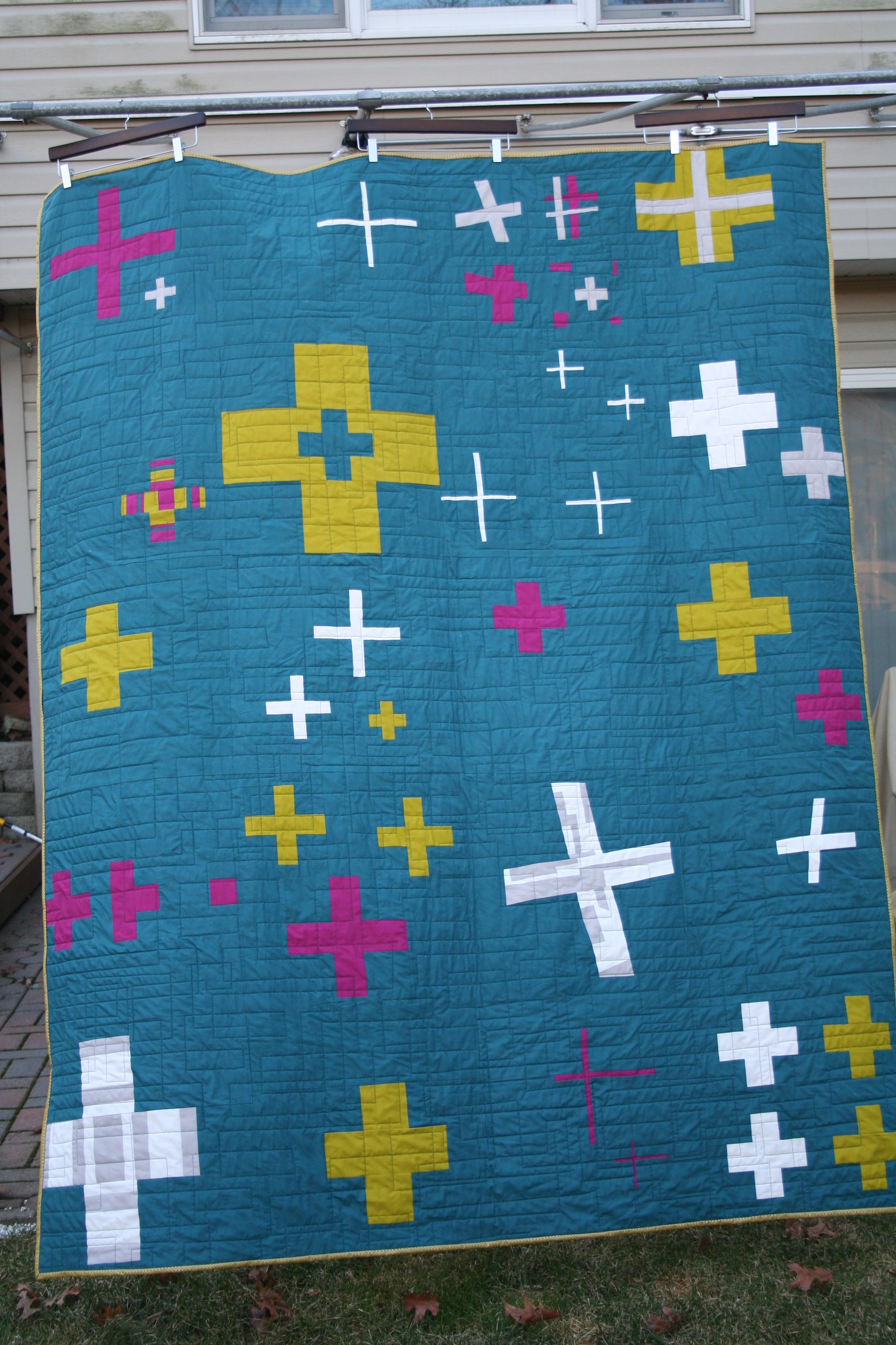 We’ll have more to say in the next week or two, but for now we want to thank everyone who helped make our Quiltcon charity quilt so beautiful. It was not easy, but we came together as a team. Huge thanks to everyone who made blocks, as well as Amy, who put the top together, Diane Fama, who quilted it and attached binding, Margy, who made the binding, and Stella, who hand sewed the binding. Thank you, North Jersey Modern Quilters!