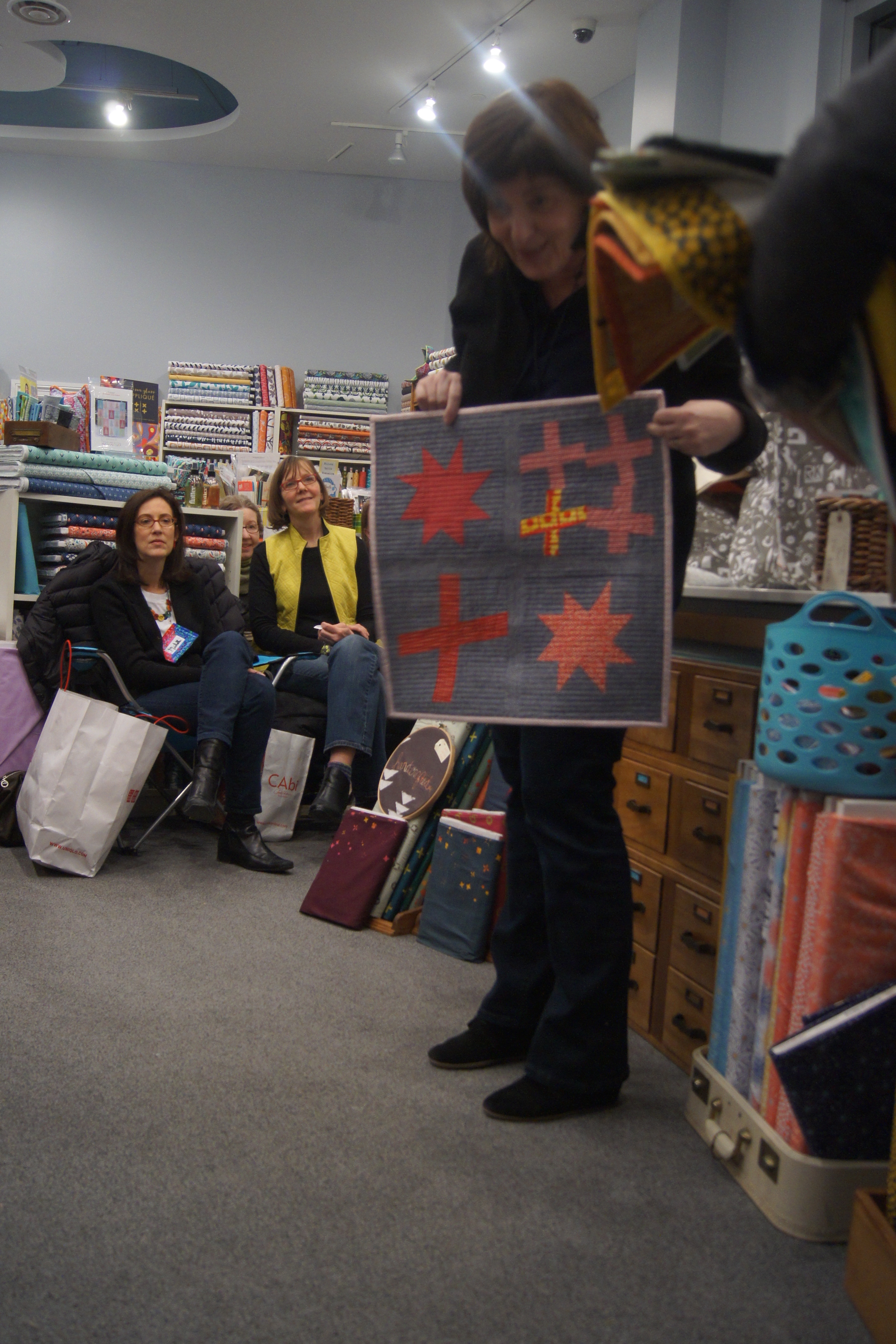 Thank you to all the members who took the time to tell us the experience that they had in Austin. We loved hearing all the details. Aleeda also passed around a slide show on her iPad so we could see the lovely quilts from the show. Thank you for that. What fun that we had those generous swag bag and other giveaways! Congrats to all the winners.