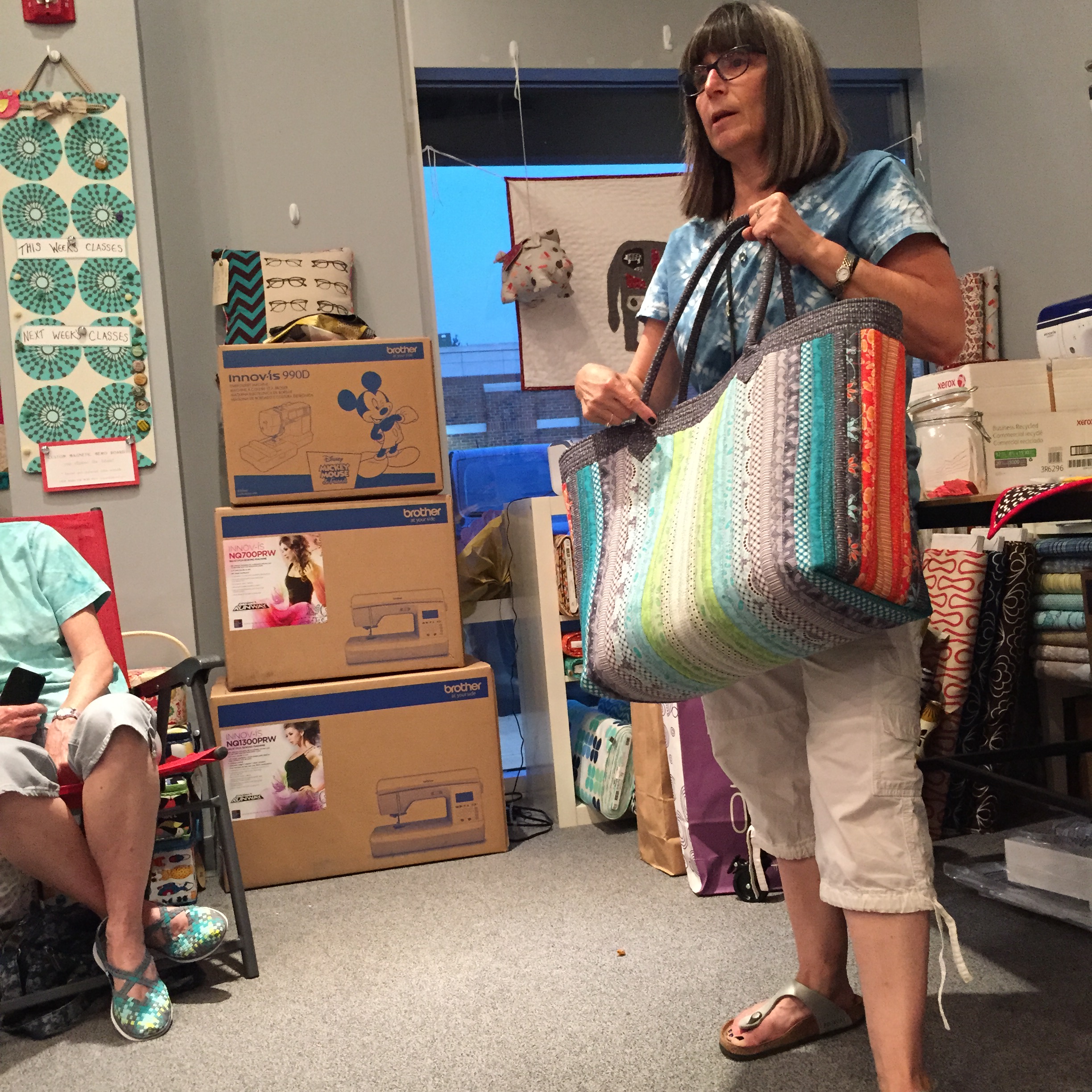 • A special thank you to Kelly, Krishma and Amy for helping to distribute Myra Peterson’s fabric and other crafty items that her husband Cliff donated to the guild.