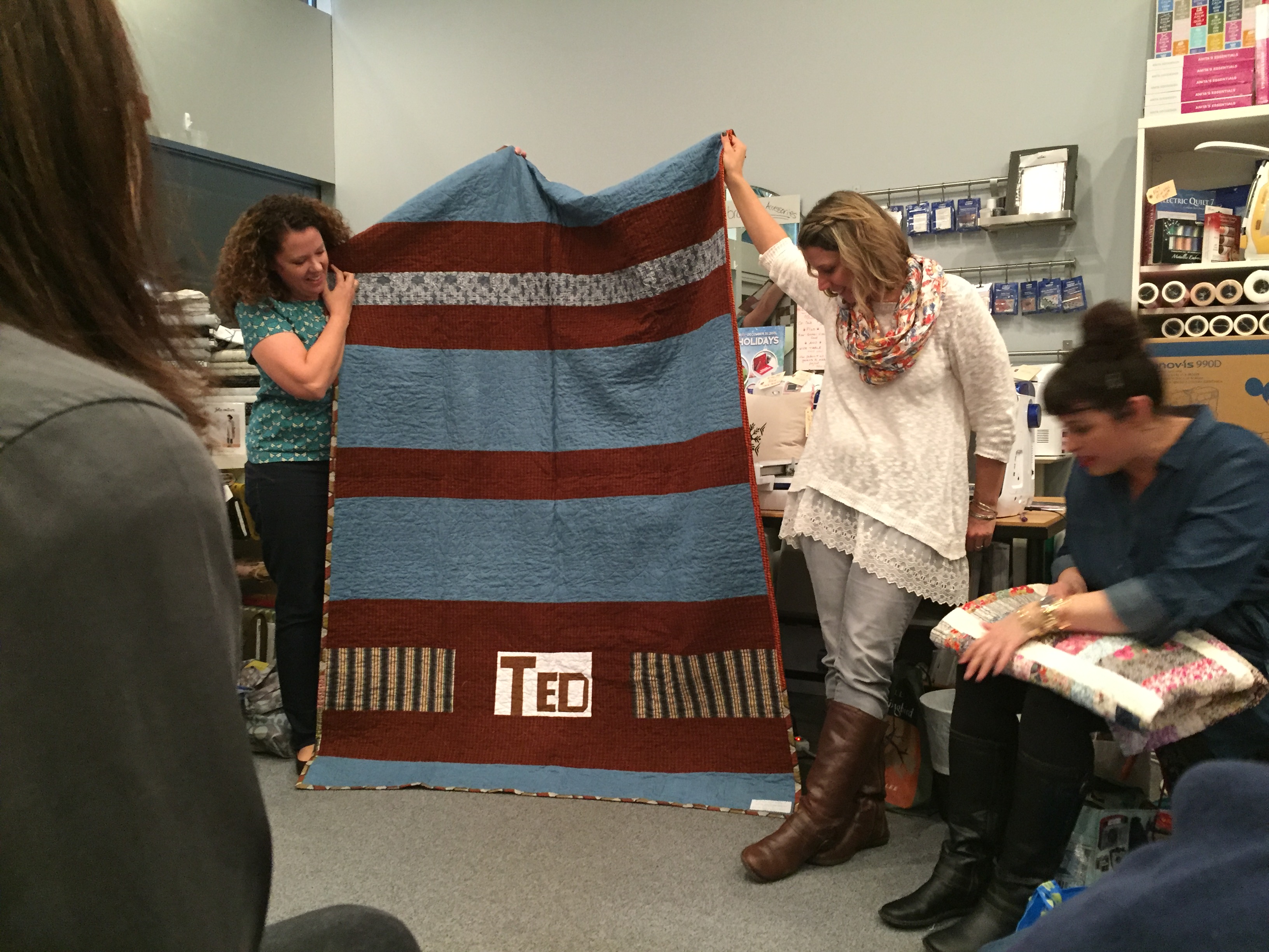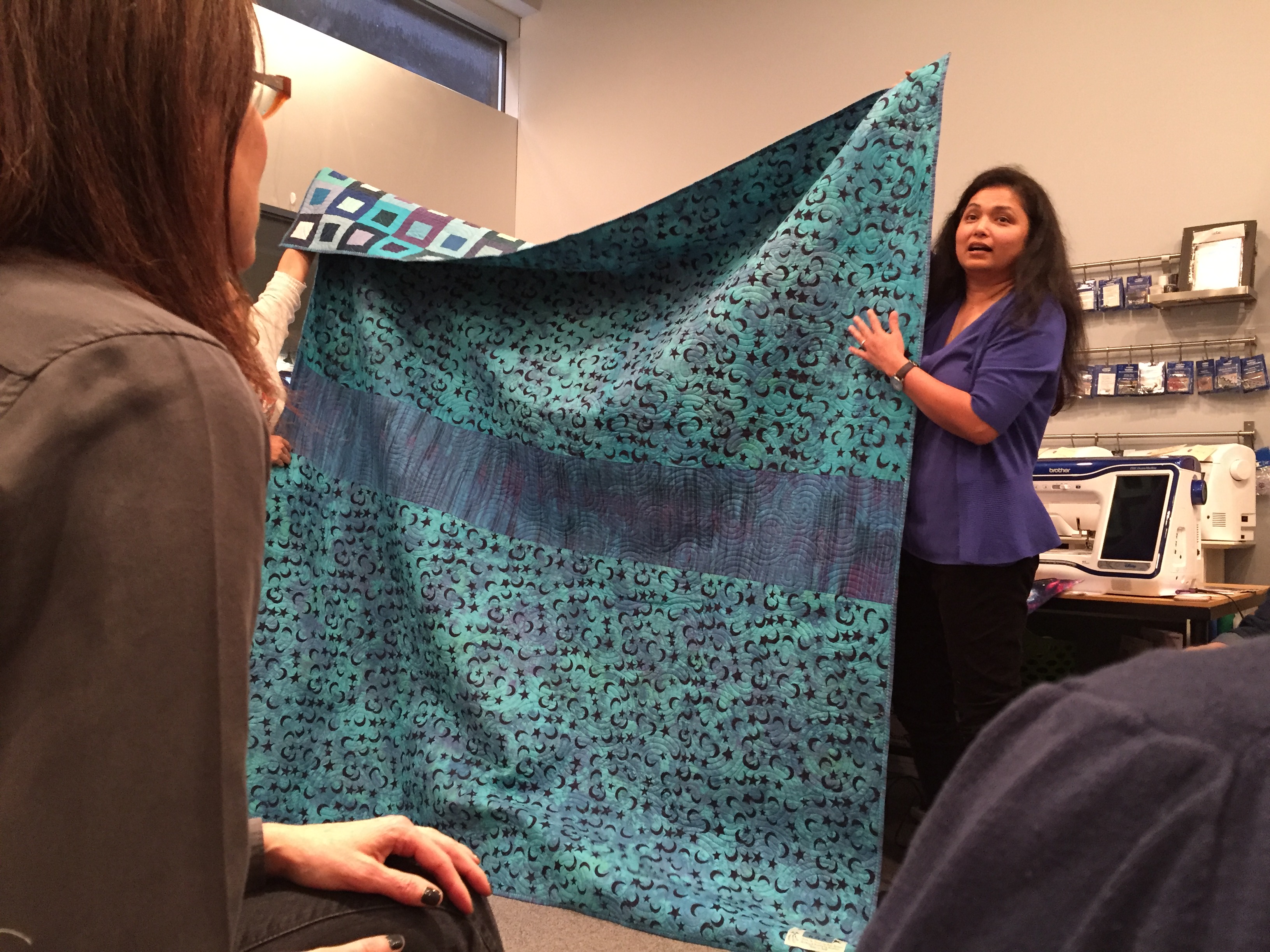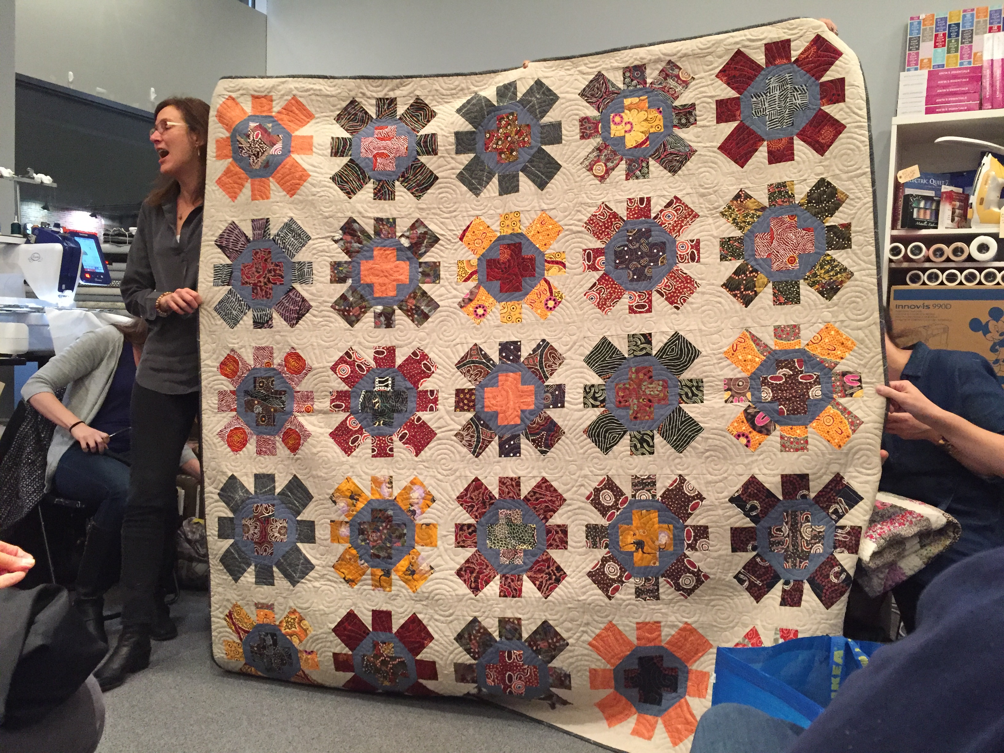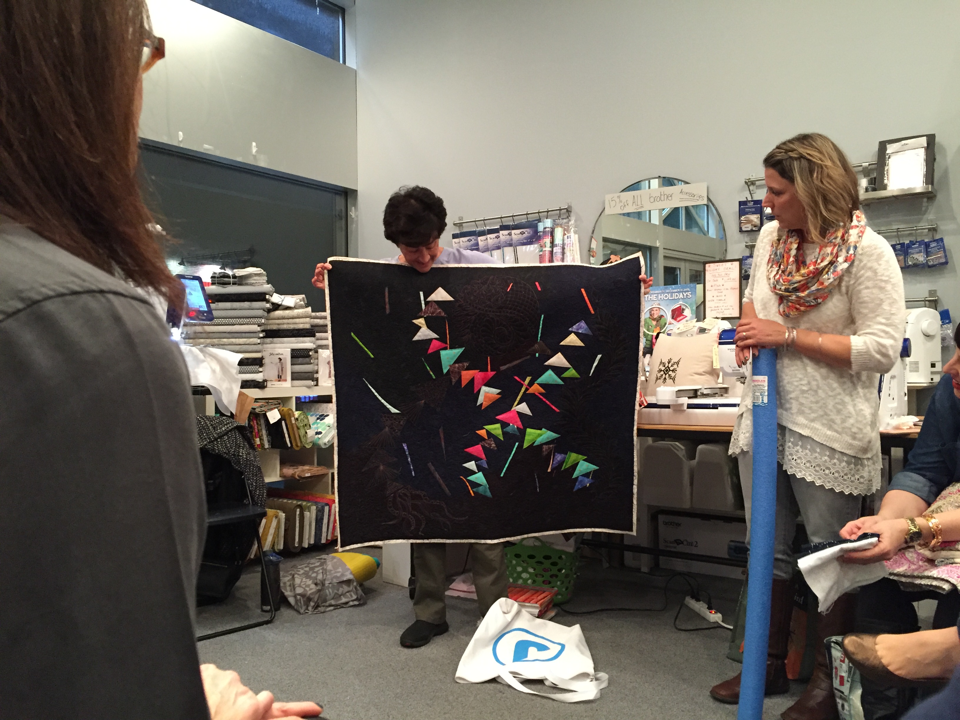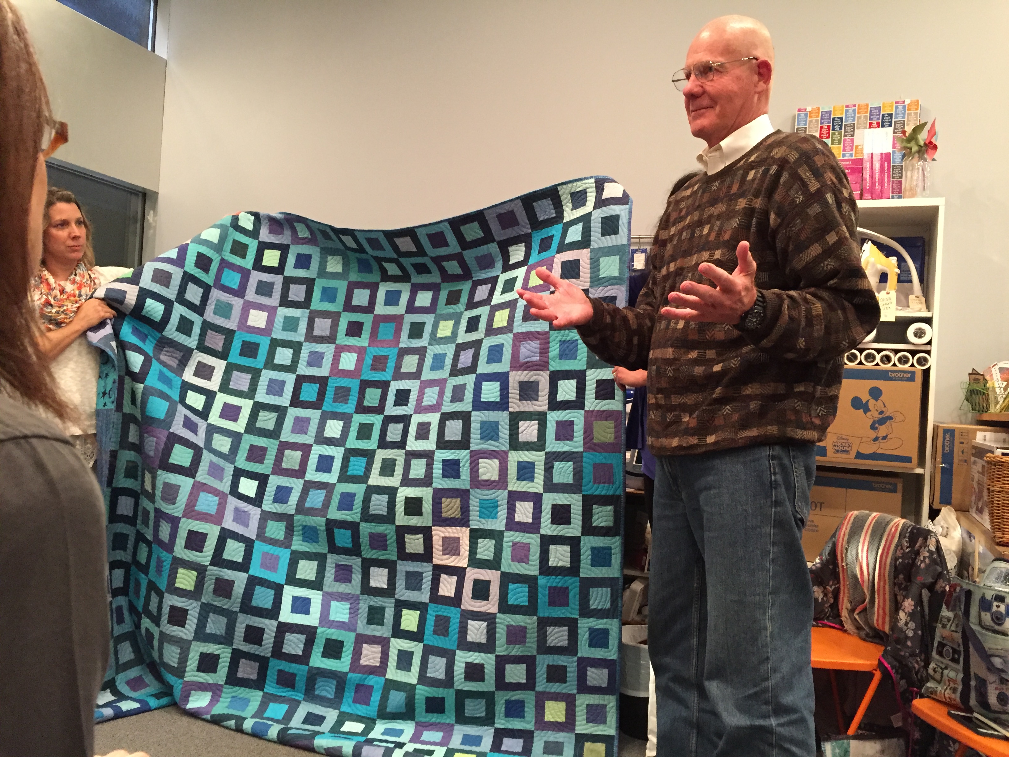 Special Guest: Cliff Peterson was here! He contacted the NJMQG after his wife Myra had sadly passed away. Myra started a quilt but never did get a chance to finish it so Amy took the pieces she had done and finished the quilt top. Krishma long armed, bound, and made a bag for the quilt out of the remaining pieces. It was a beautiful tribute to Myra.