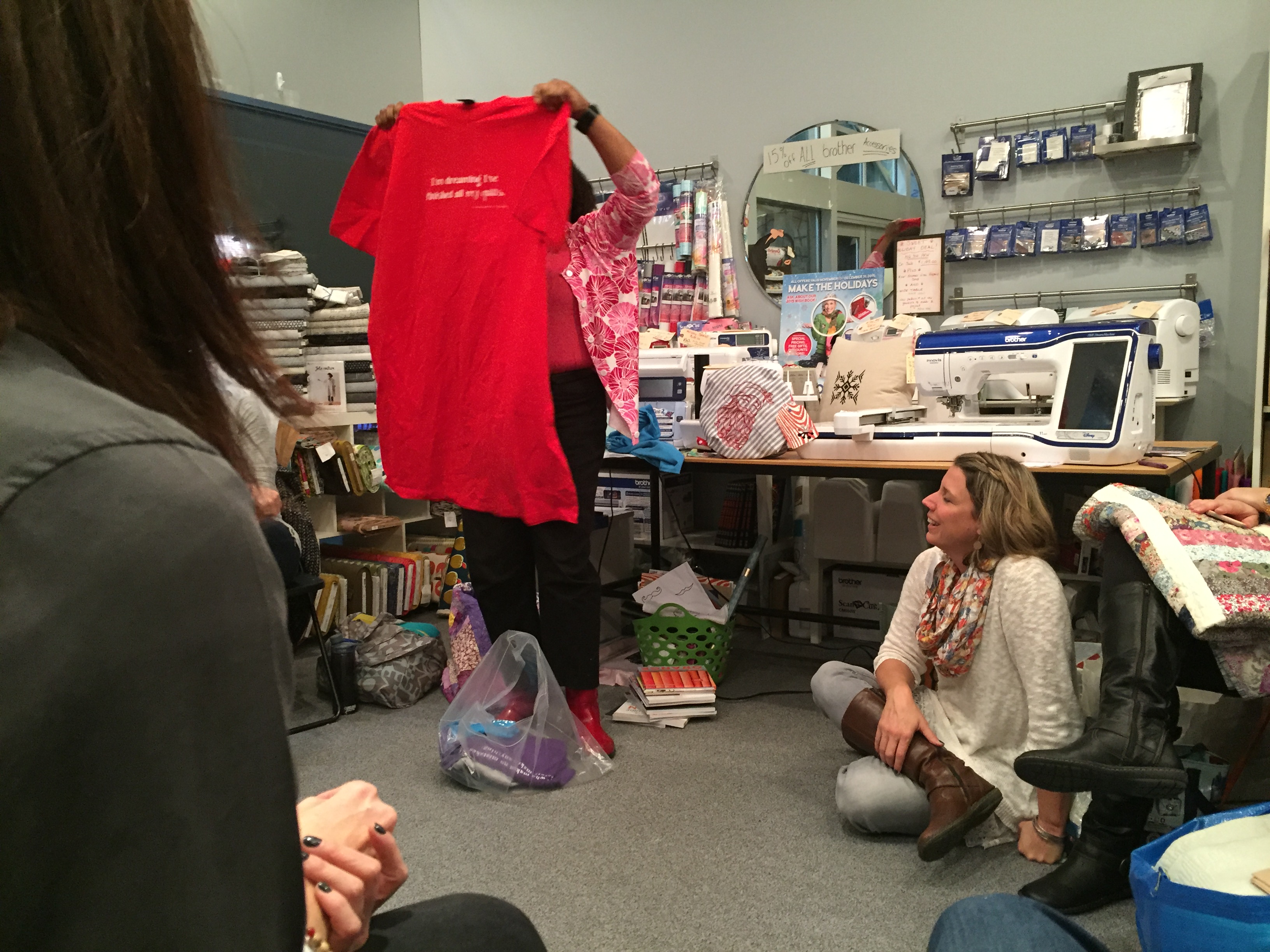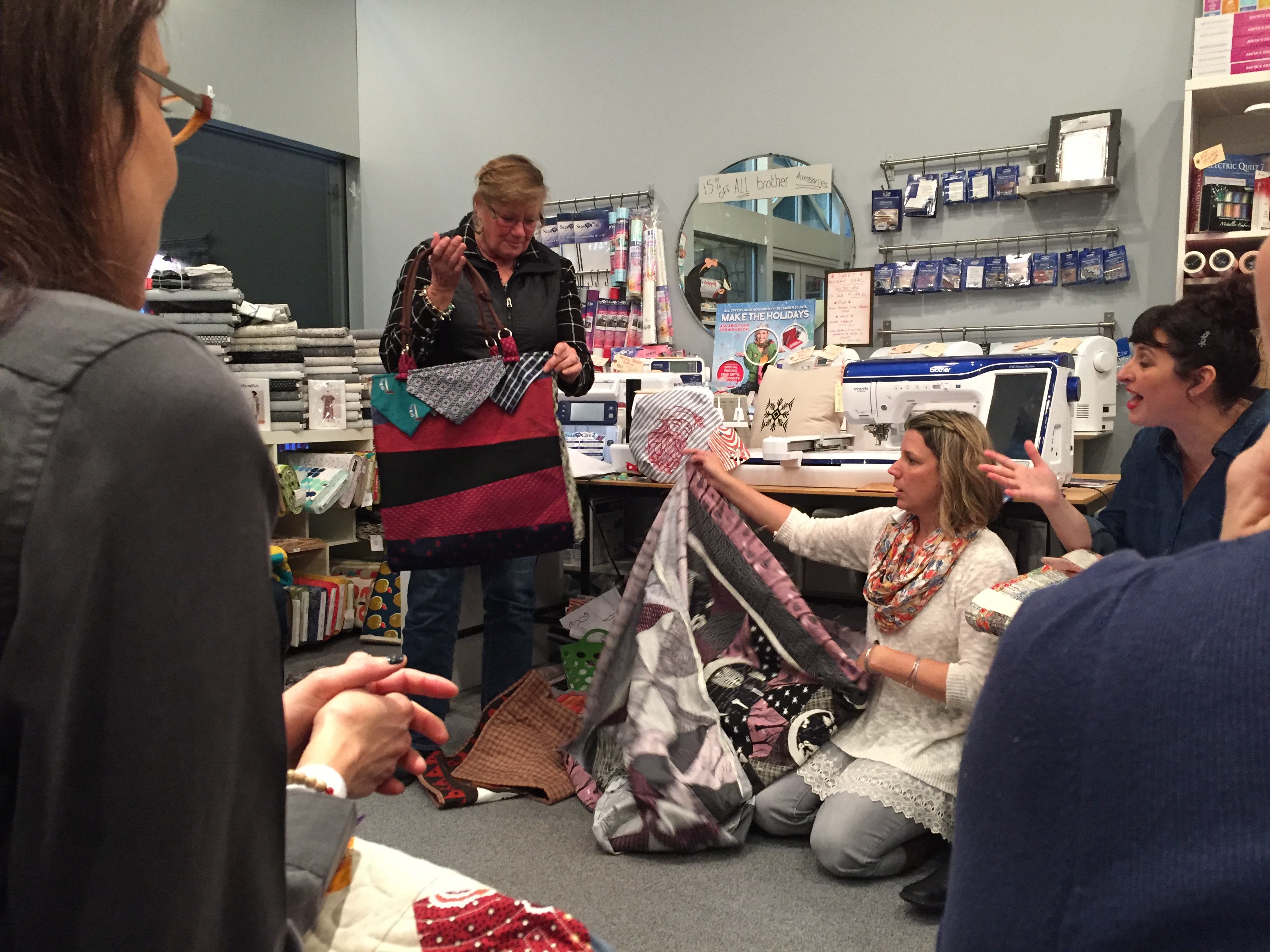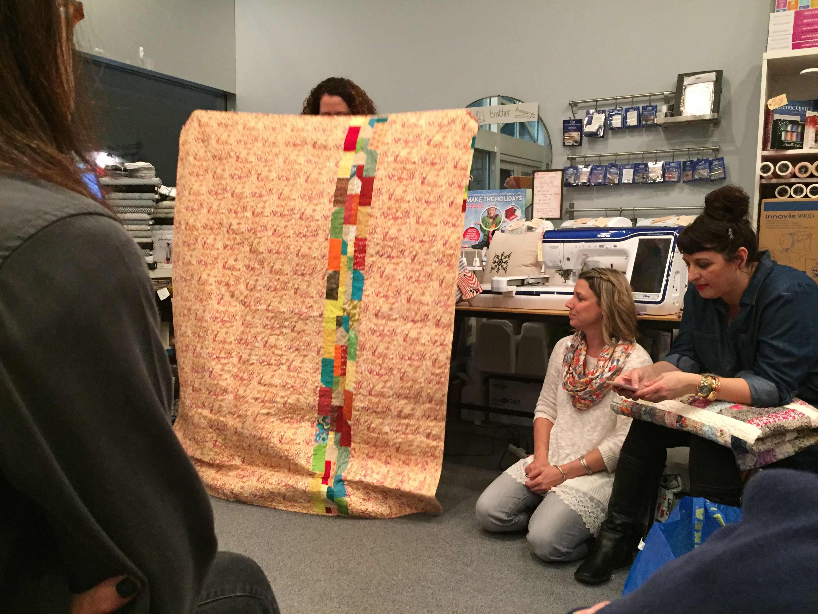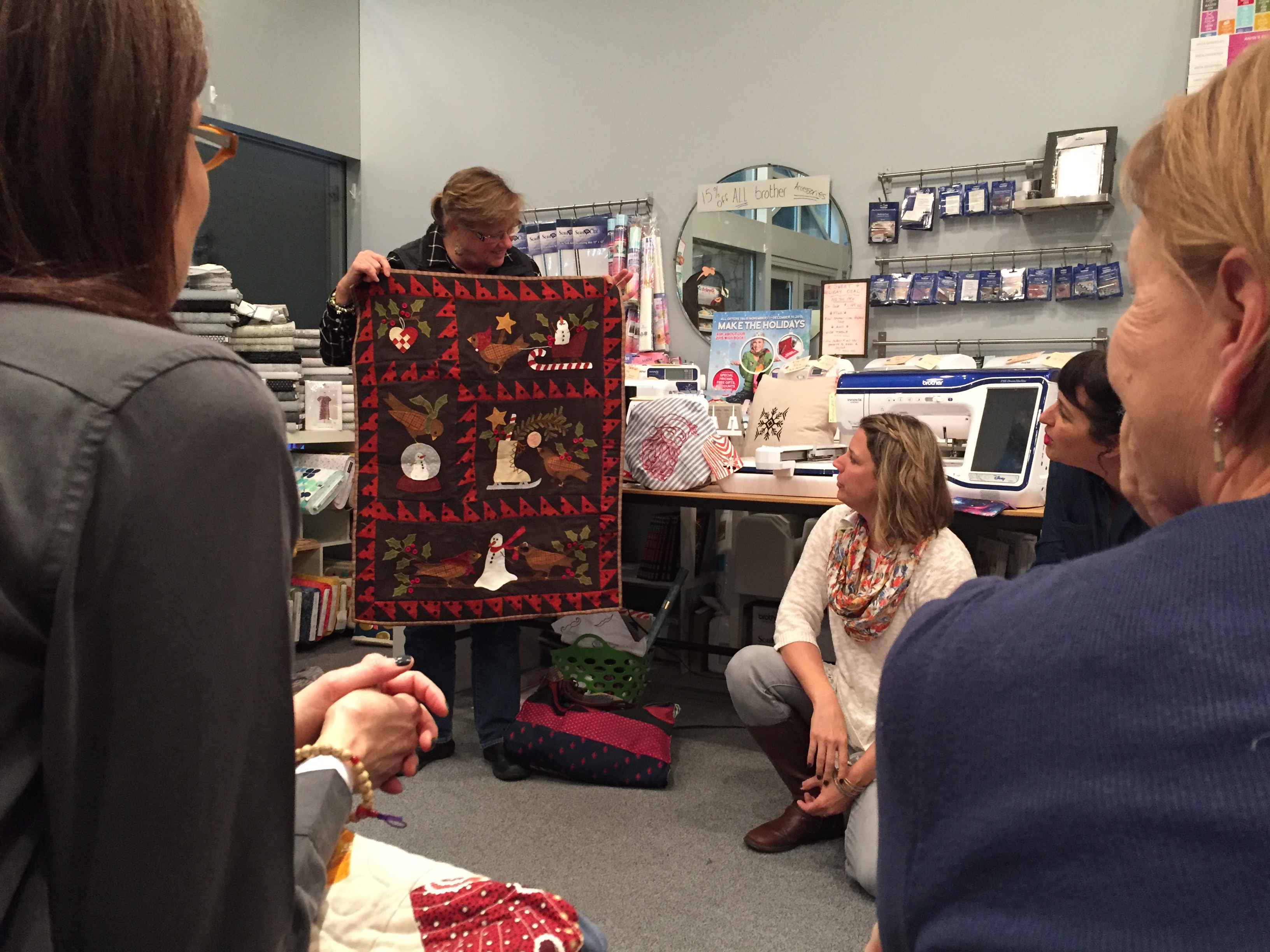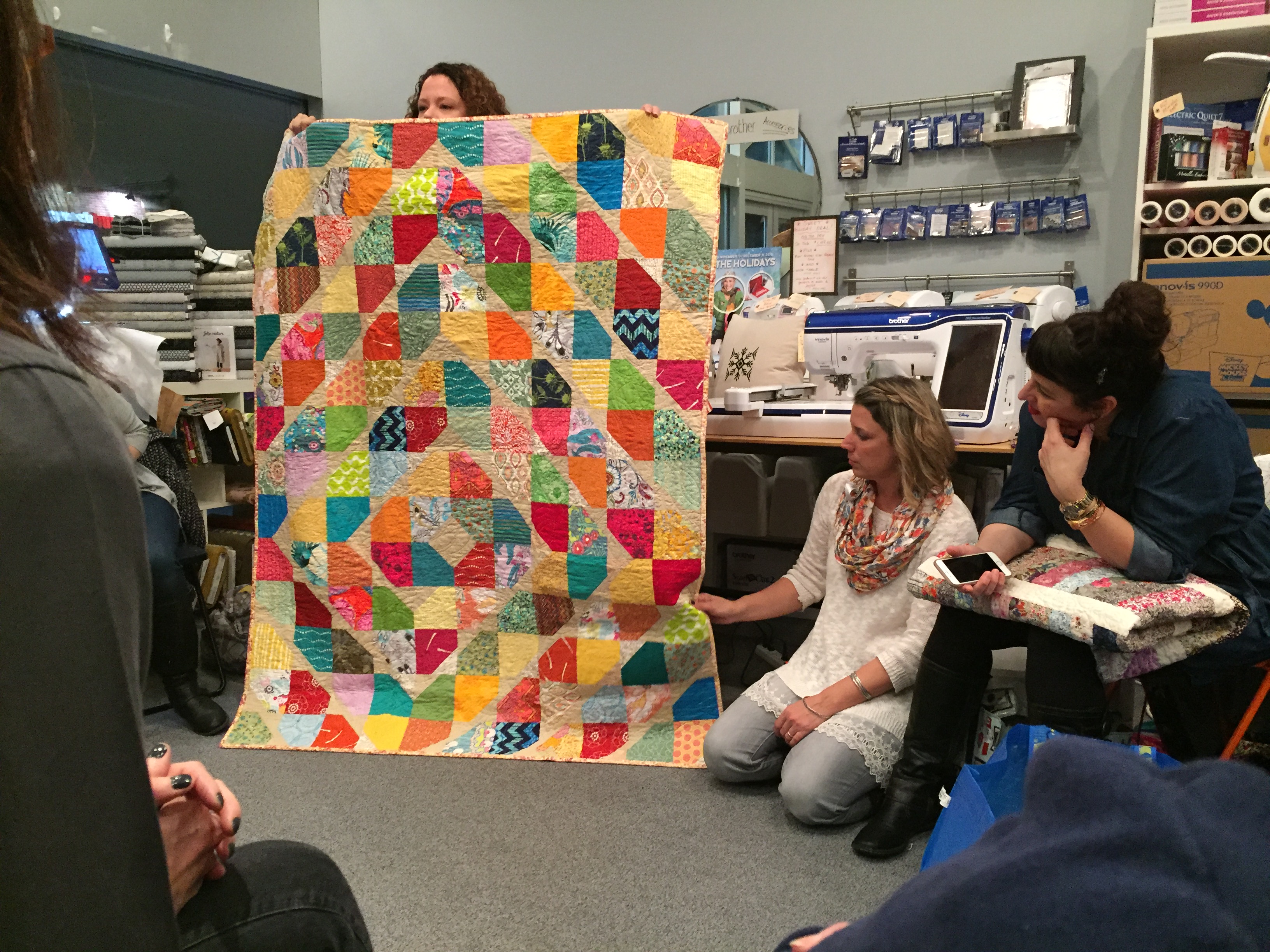 Special Guest: Cliff Peterson was here! He contacted the NJMQG after his wife Myra had sadly passed away. Myra started a quilt but never did get a chance to finish it so Amy took the pieces she had done and finished the quilt top. Krishma long armed, bound, and made a bag for the quilt out of the remaining pieces. It was a beautiful tribute to Myra.
