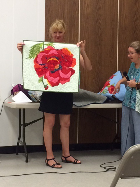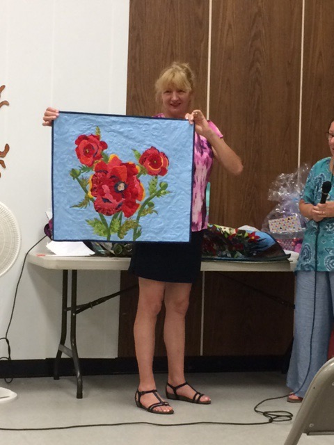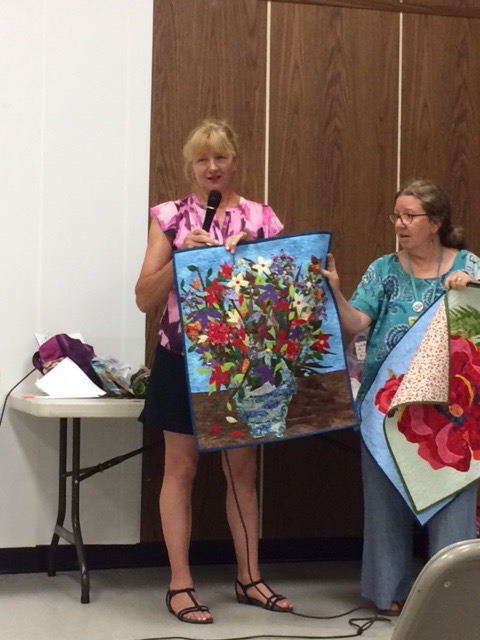 The Quilt Spot ladies came from Midland Park with a pop-up shop, which was in operation before and after the meeting and during the break. They contributed two fat quarter bundles with gift cards, which went to two lucky members (JoAnn and Josie). Everyone seemed to enjoy the shopping, so maybe we can have them back next spring.