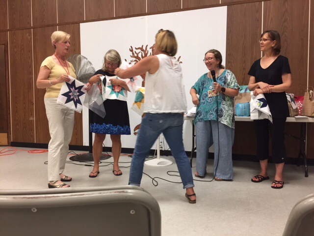 Second quarter bee blocks were exchanged. Due to vacations and family emergencies they were not all there, but the ones we did see were beautiful.