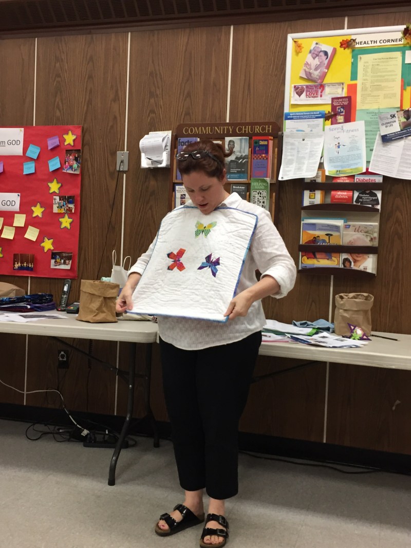 • Rachel-Last year we participated in Giving Hope Network. They provide ‘stuffed suitcases’ for 2-12 year olds in the Essex county foster system. This year we would like to participate as well. If you would like to help please bring completed pillowcases to the September meeting or the October 7 open Sew