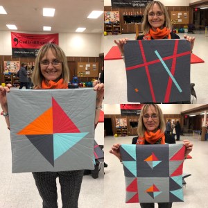 Our official membership roster has been updated, and at last count it was 68 members. This month our meeting fell during Quiltcon and we had quite a few members down in Nashville taking it all in (including our very own Melanie, who won 3rd place in improv!!), but we’ll hear more about all that next month.