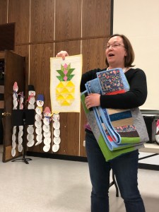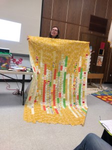 We also got a nice update on the upcoming program schedule. It will be emailed and posted soon, for those of you that couldn’t make the meeting. For example, though, on March 30, you will have the chance to take a ruler class with Betsy and/or make a fun Reuse-Recycle-Repurpose apron with Kathy. Signups will be out soon.