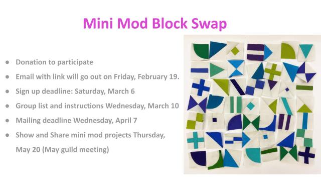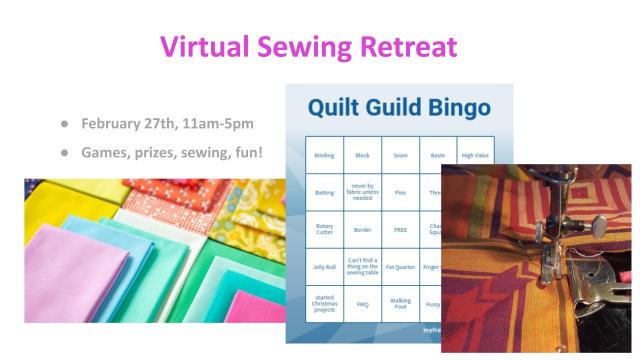 Greetings! Hope you are all well during this snowy February! The best thing about that for me is all the quilting I’m getting done. So let’s get to it. We had 60 people join our Zoom meeting. We welcomed 5 new members: Neena Shah, Joanne Kornoelje, Ellaree Pray, Wannetta Phillips and Kaitlyn Fritsch.