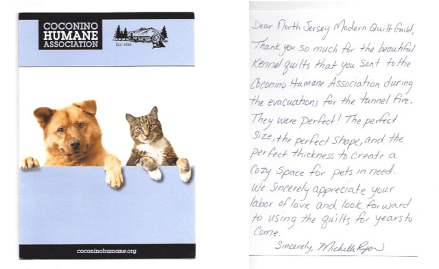 We got a lovely thank you note from all the fabulous Kennel Quilts you generously made and donated.