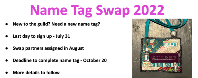 With more in person things on the horizon, we are reaching out to anyone who needs/wants a name tag. We are pairing up members in August, and are planning on swapping at the in-person October meeting. Please reach out to a board member if you are interested in getting on that list and didn’t get that email.