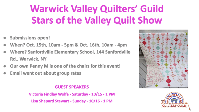 This weekend, October 15 & 16, visit our friends at the Warwick Valley Quilters show