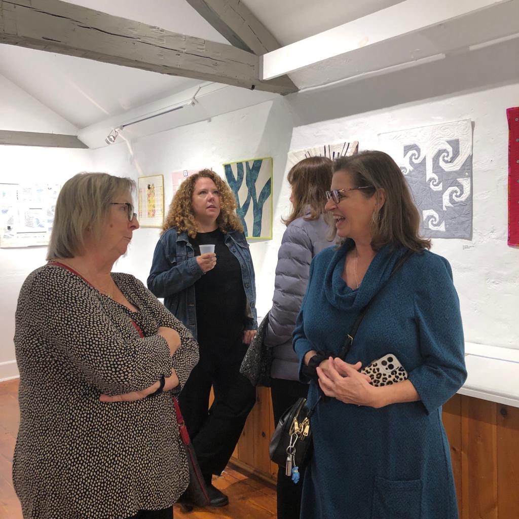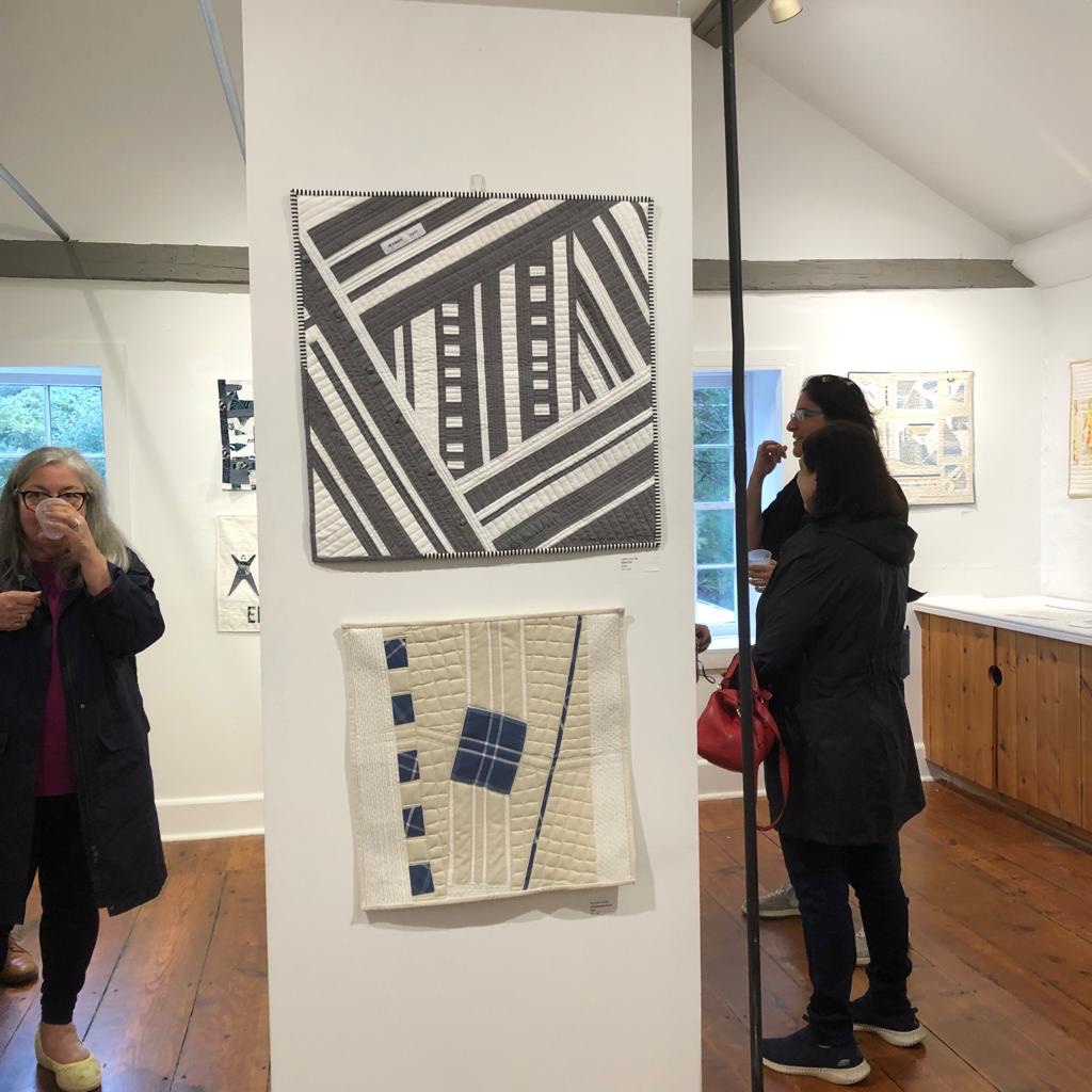 The I Used to be a Shirt Peters Valley Gallery show has now opened for all to see. The guild was challenged to take a button down shirt with white and/or cream and turn it into a mini quilt between 18-24″ square. There was an opening reception that many members were able to attend. The show will be open through November 6, so there’s still time to see it. Some of the minis are also for sale. If you don’t have a chance to see it in person, you can see them all on their website. We had 38 minis made for the show! Amazing! Thanks to Lenny for the photos.