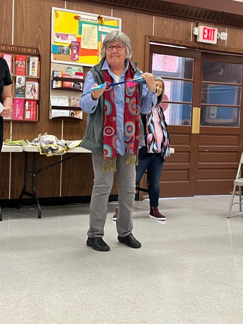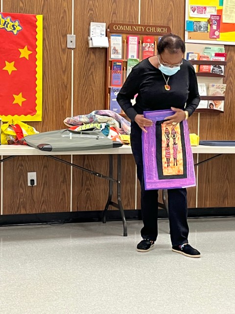 Saturday October 29, we are having an in person open sew, from 10-4 at the Community Church of Cedar Grove. For now we are continuing to do the Zoom/in person combo for our meetings. We know we have varying levels of comfort and availability and want to engage with as many people as much as we can. On the way out of the meeting we asked everyone to recycle their raffle ticket in an informal poll. Pick a Can! Which day would you prefer live meetings? 3rd Thursday evening, 3rd Saturday mornings, or stay the way it is, combo? A survey was sent out to get an idea of what everyone is looking for in programs and meetings, too! We know we can’t please everyone all of the time, but we are hoping to make as many of us as happy as we can!