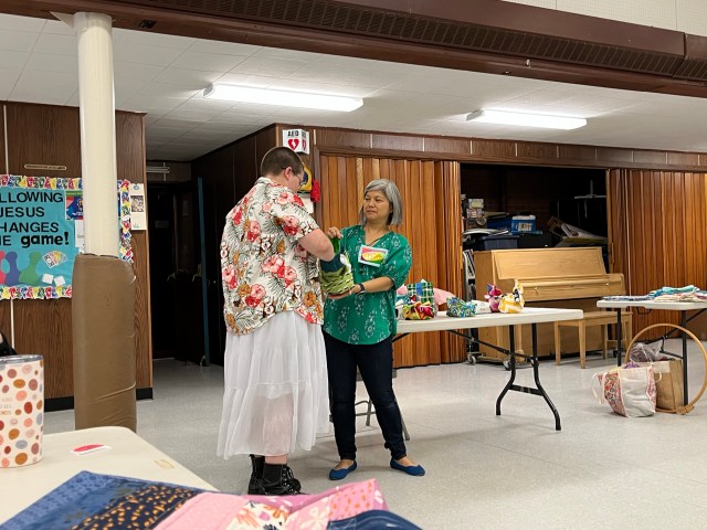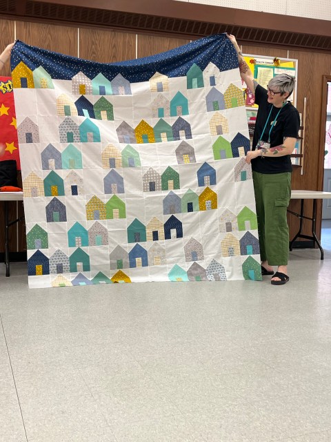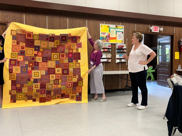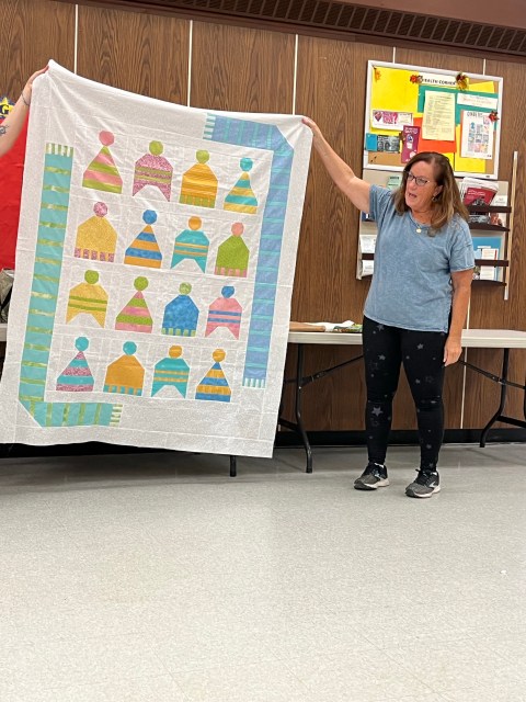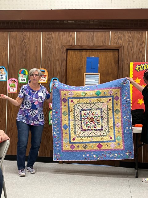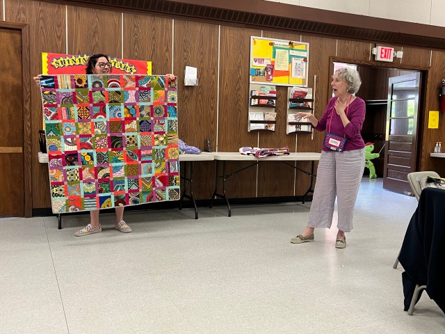 Next we moved on to our business portion of the meeting. Starting with our lovely treasurer, Annette, giving us an update on all things related to the budget. That included a vote on using funds for rentals for our first ever quilt show! It was voted in favor of using the allotted funds, which should be recouped from quilt submission and door entry fees.