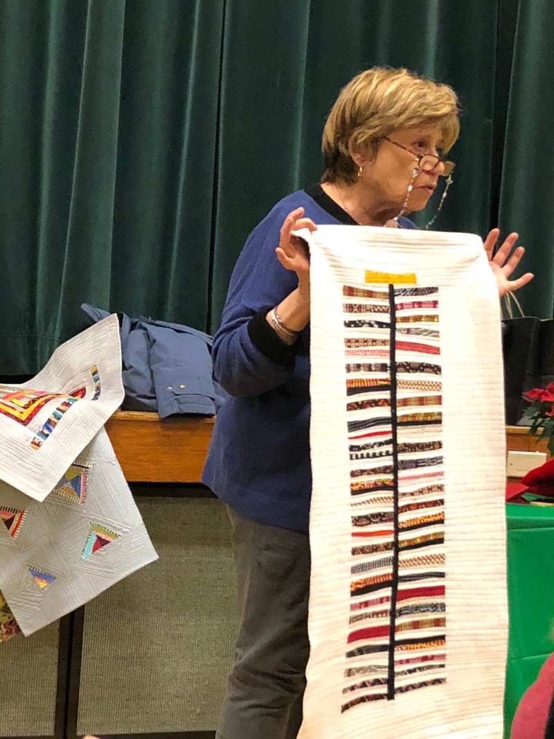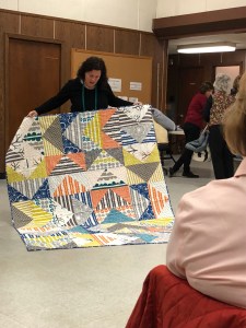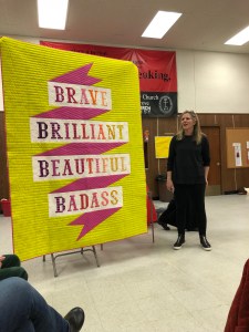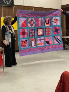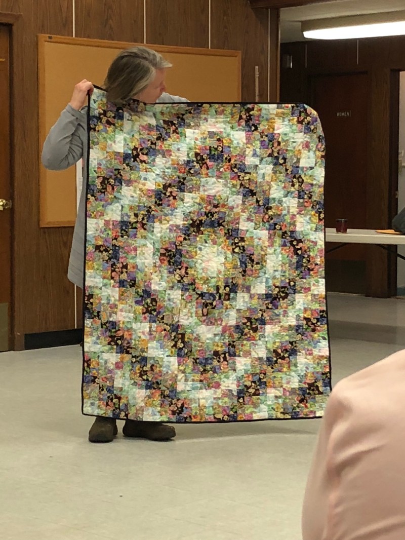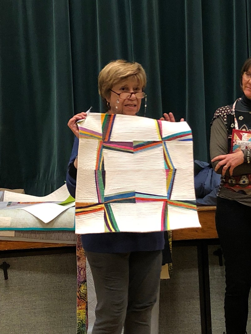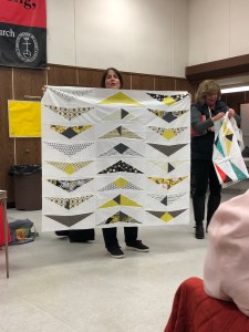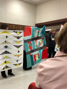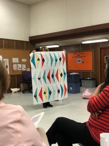 We we’re lucky enough to have Berene aka Happy Sew Lucky aka member Janita’s sister be at our meeting. Funny thing is that she was having a little giveaway on IG and our Margy (and I) won!! So she was able to give her the prize and brought along the Badass quilt for us to enjoy.