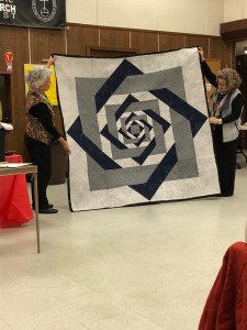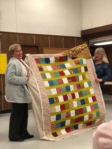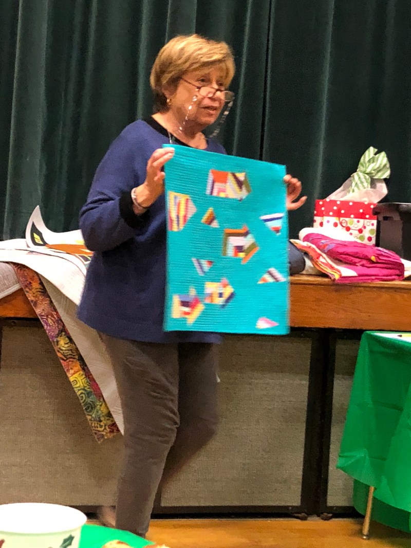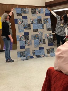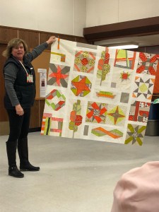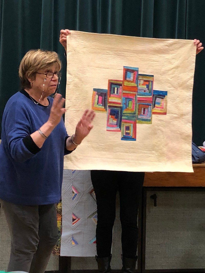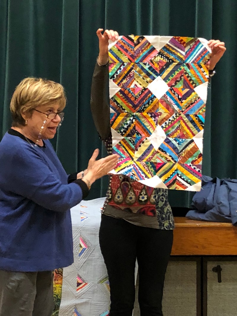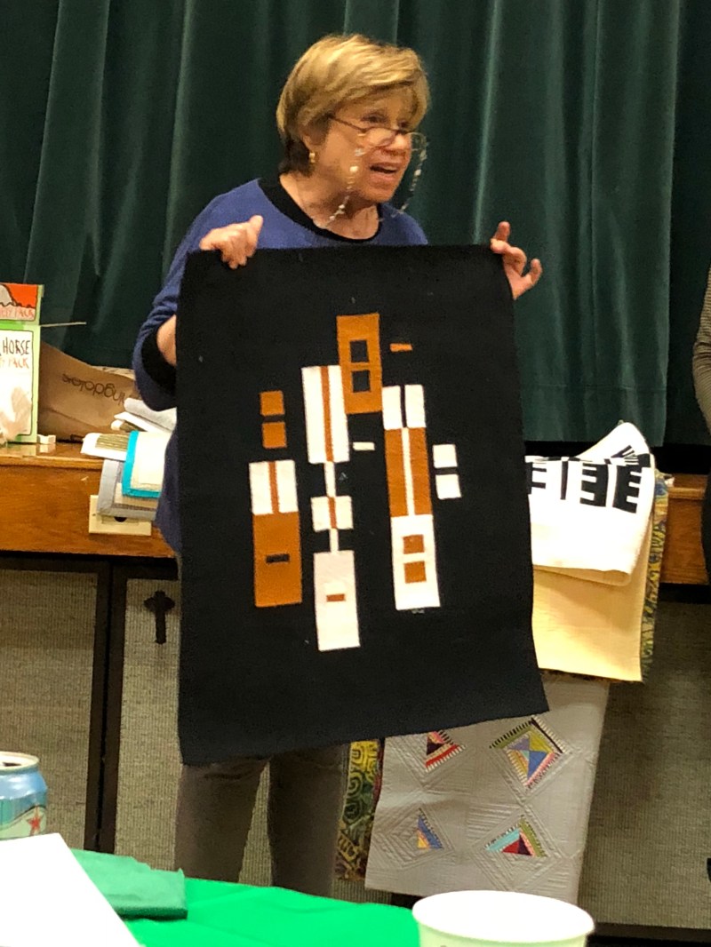 We we’re lucky enough to have Berene aka Happy Sew Lucky aka member Janita’s sister be at our meeting. Funny thing is that she was having a little giveaway on IG and our Margy (and I) won!! So she was able to give her the prize and brought along the Badass quilt for us to enjoy.