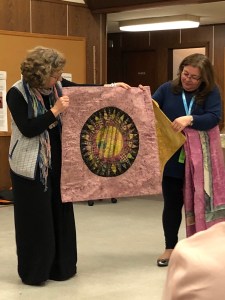 Welcome to our new members and visitors Jeanette, Berene, Cosmo (the ultimate quilt holder) and Kathy. (Sorry if I’ve misspelled your names)