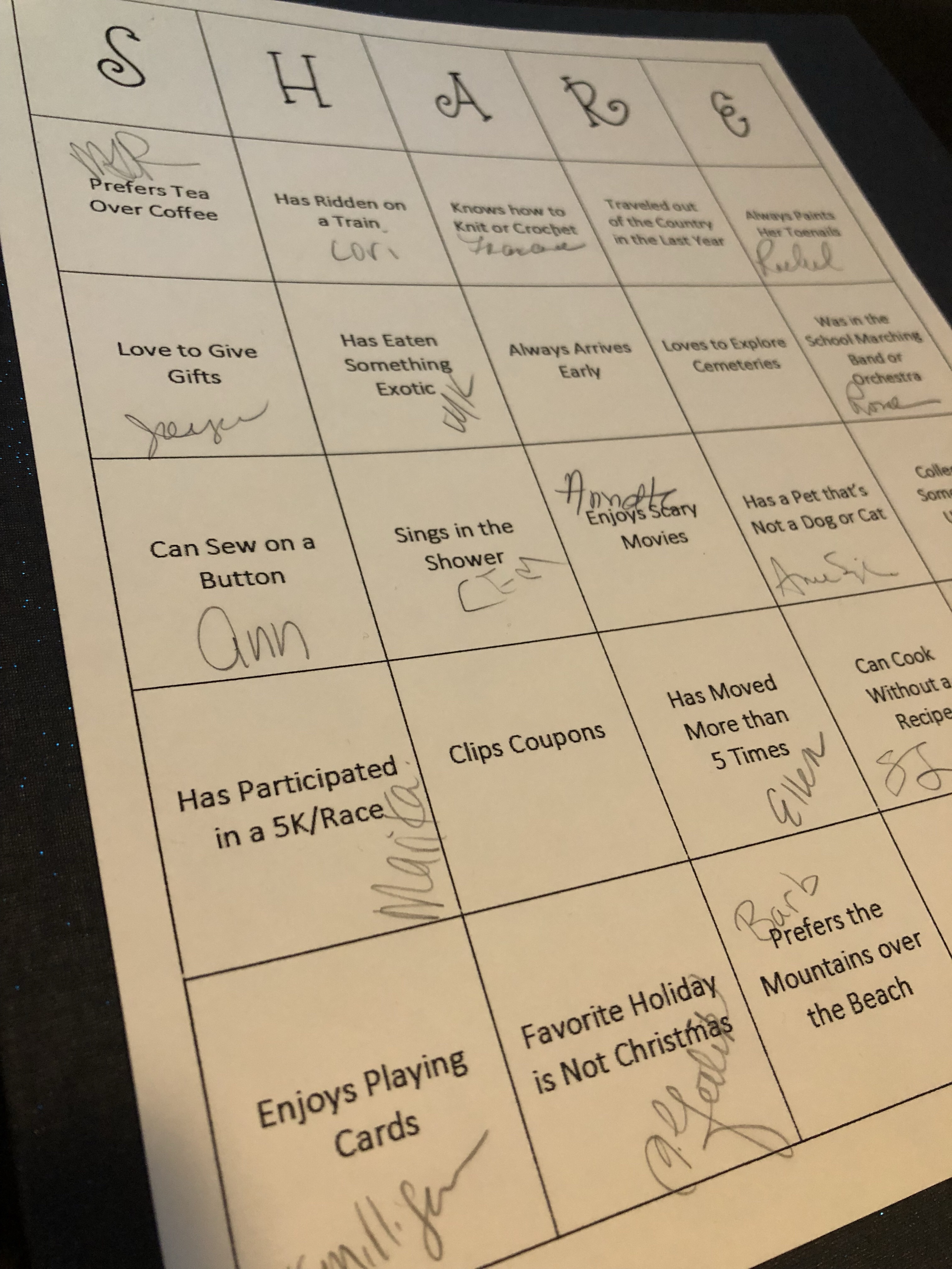 SHARE Time! (so much fun to get up moving, and getting to know some crazy little details about members)