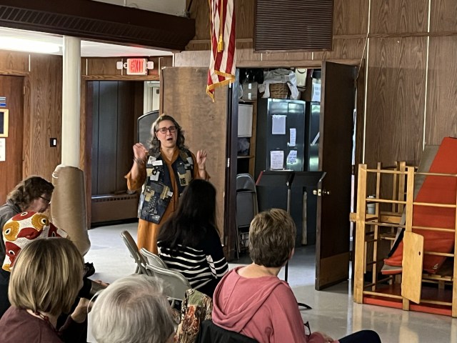 We have some committee updates. Did you know we have a library? Books and rulers are available for borrowing. Caroline Hayes will be our new guild librarian. We are also looking for a new head to our charity committee. Please reach out if you are interested in helping out.