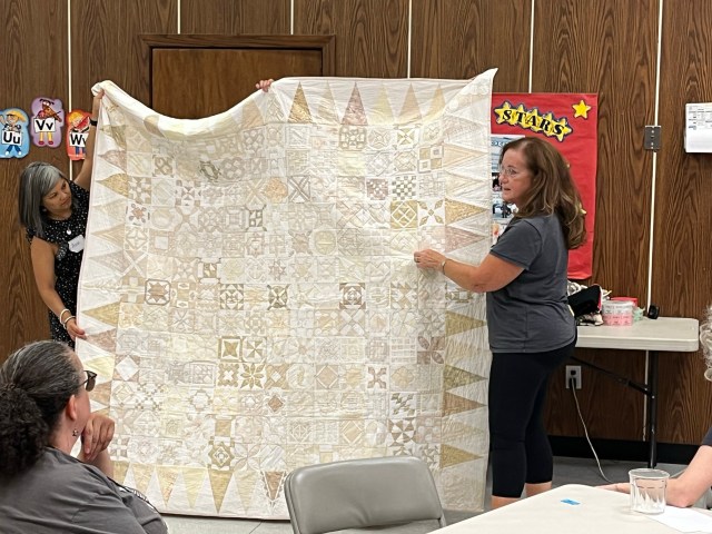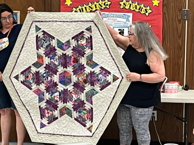 Hello quilting friends! We had our monthly meeting on March 17. We had 38 people joining us and a very special guest speaker.