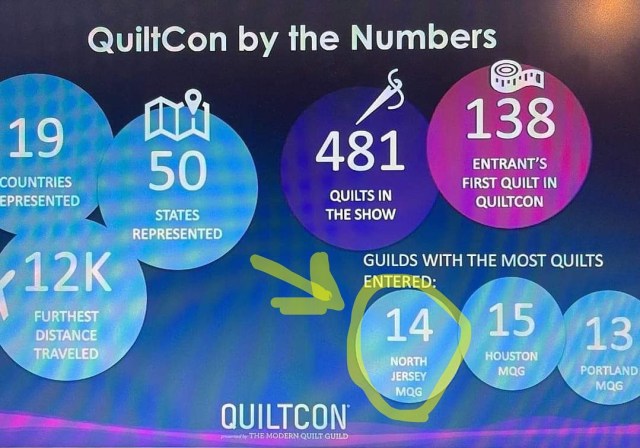 It is Quiltcon time! We have a bunch of members there and I can’t wait to see more pictures and hear stories! Amazingly, the NJMQG had the second most amount of quilts entered in the show. A whopping 14! Way to go, friends! Represent! Congrats to all! Let’s keep on quilting, submitting, and making your quilty friend’s proud!