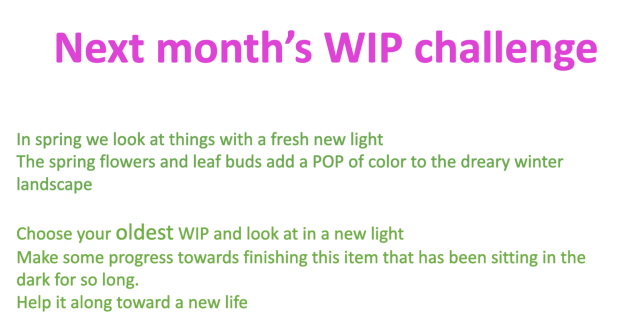 And the winner is….Susan! Congrats! Keep on working on those WIP’s everyone!