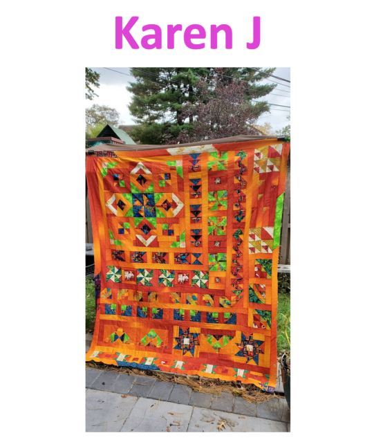 Last years Block of the MonthFor husband (who normally doesn’t like her quilts)- Spring Leaf Studios ArboretumMaria Shell class- charityFor great great niece- Krista Moser Ladybug BloomFirst Houston QG in about 2 years. To benefit a woman’s shelterMQG mini swap- JBird Rock Candy